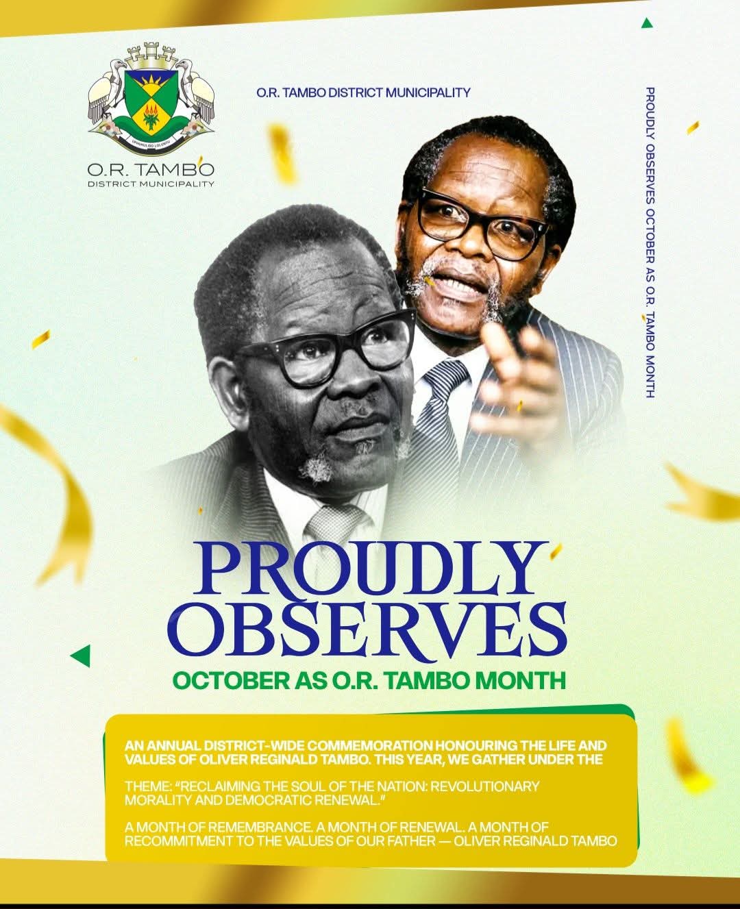 Every beautiful October morning in our district not only reveals the splendour of our landscapes, it also reminds us of the beauty of a soul who walked among us: our father, Oliver Reginald Tambo.